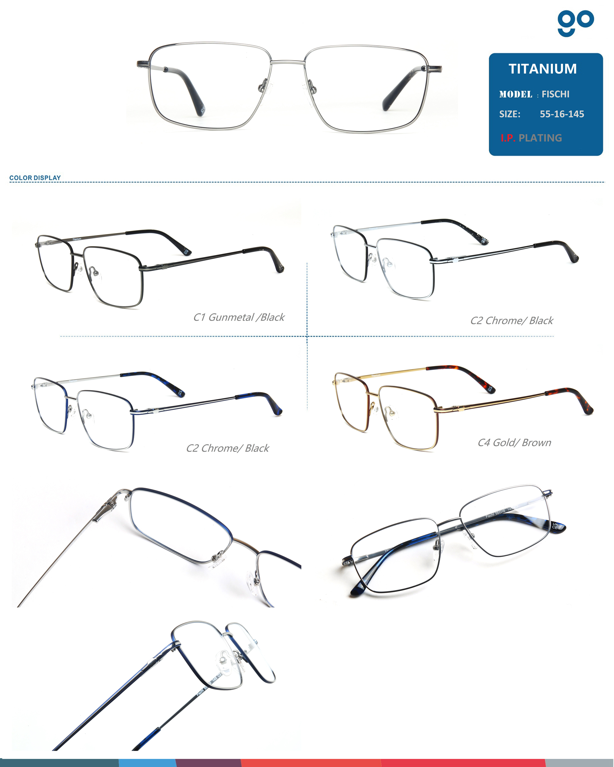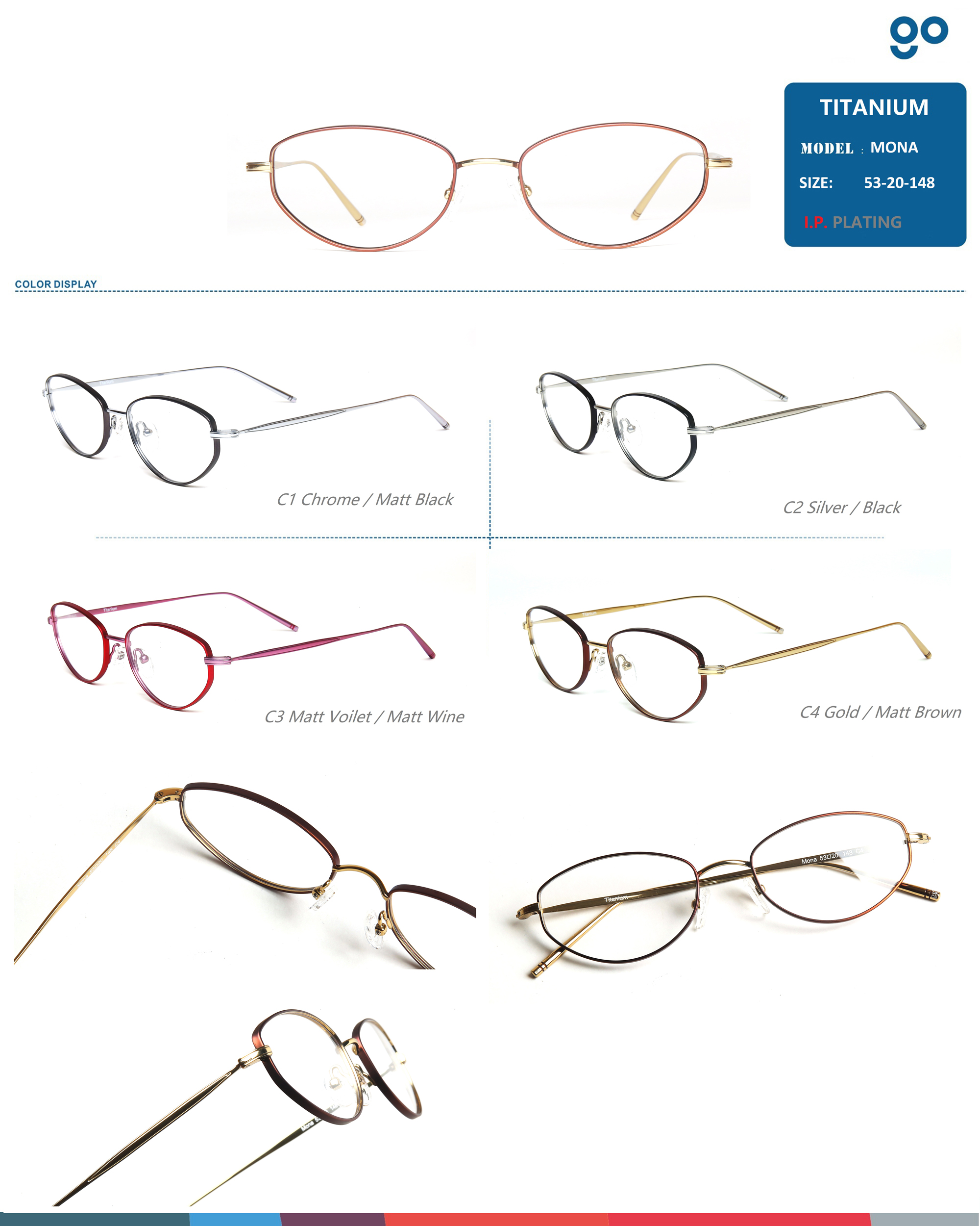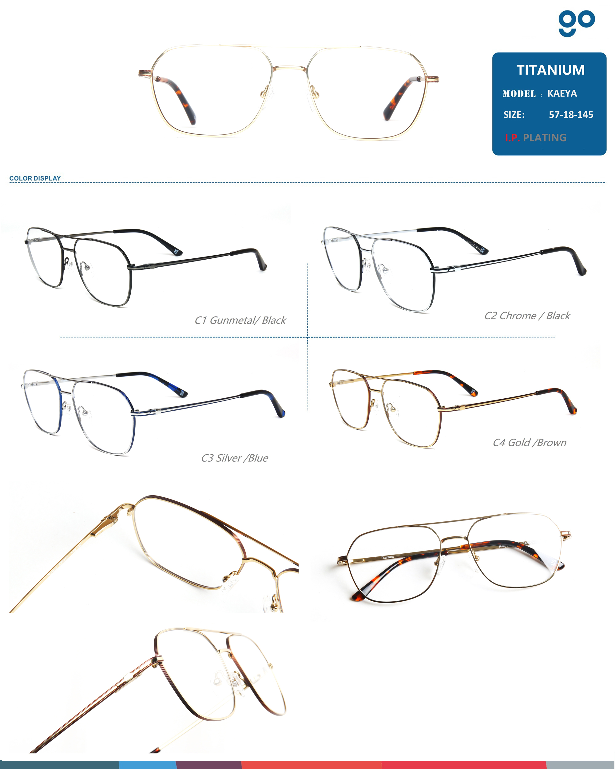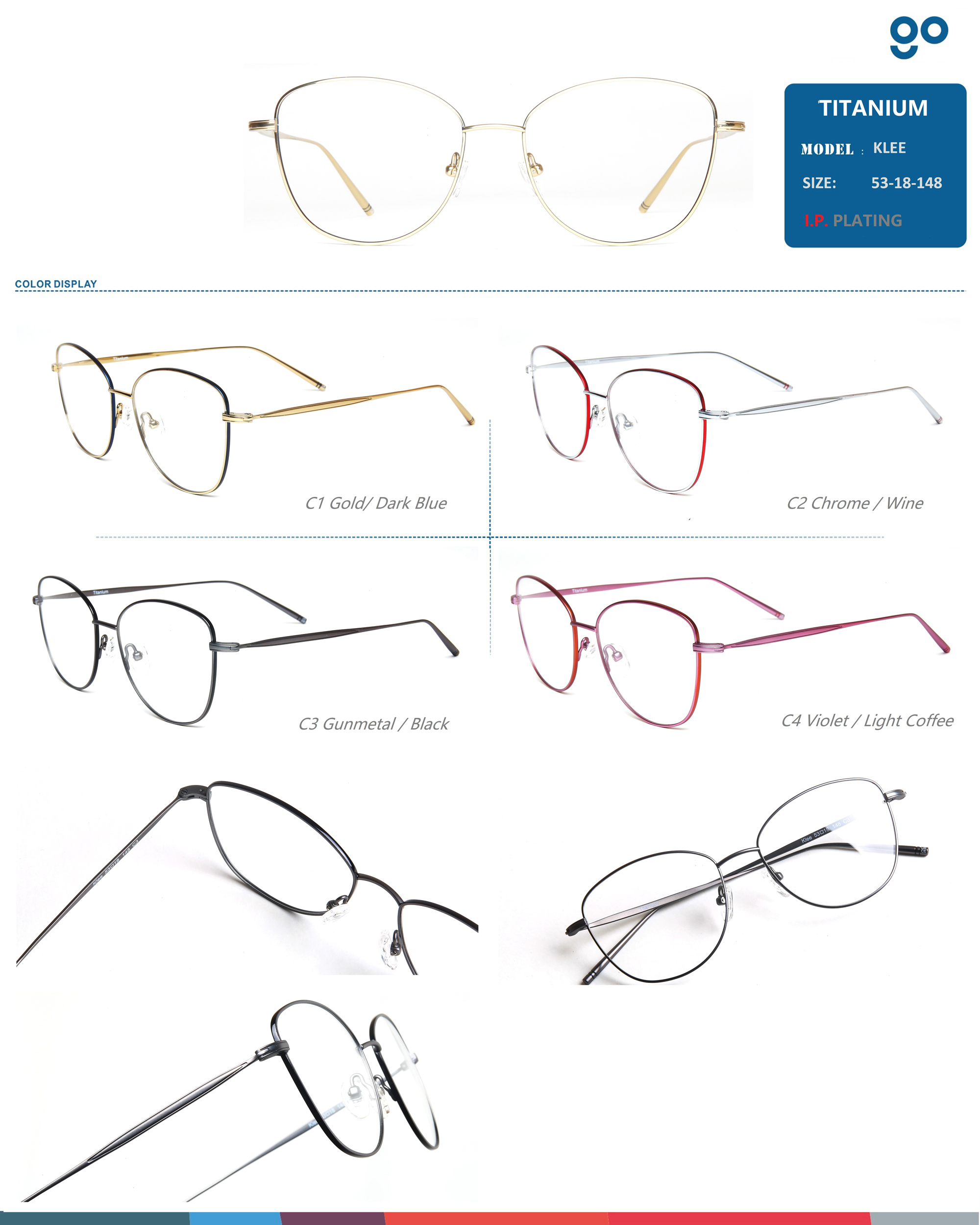 titanium optical frames- pure titanium with IP plating 2 tones